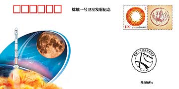 首枚“探月”《嫦娥一號(hào)衛(wèi)星發(fā)射紀(jì)念》封發(fā)行
