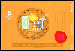 圖為《北京2008年奧林匹克博覽會(huì)開(kāi)幕紀(jì)念》郵票小型張。
