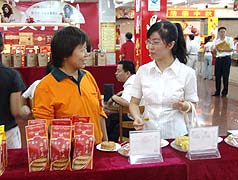為做好今年的“思鄉(xiāng)月”營銷,吉林省長春市郵政局日前特別設(shè)立了“中秋‘思鄉(xiāng)月’大客戶展示中心”,為大客戶提供選購、簽約、運(yùn)輸、投遞“一條龍”服務(wù)。圖為長春局速遞營業(yè)員在展示中心為客戶介紹今年的“思鄉(xiāng)月”產(chǎn)品!